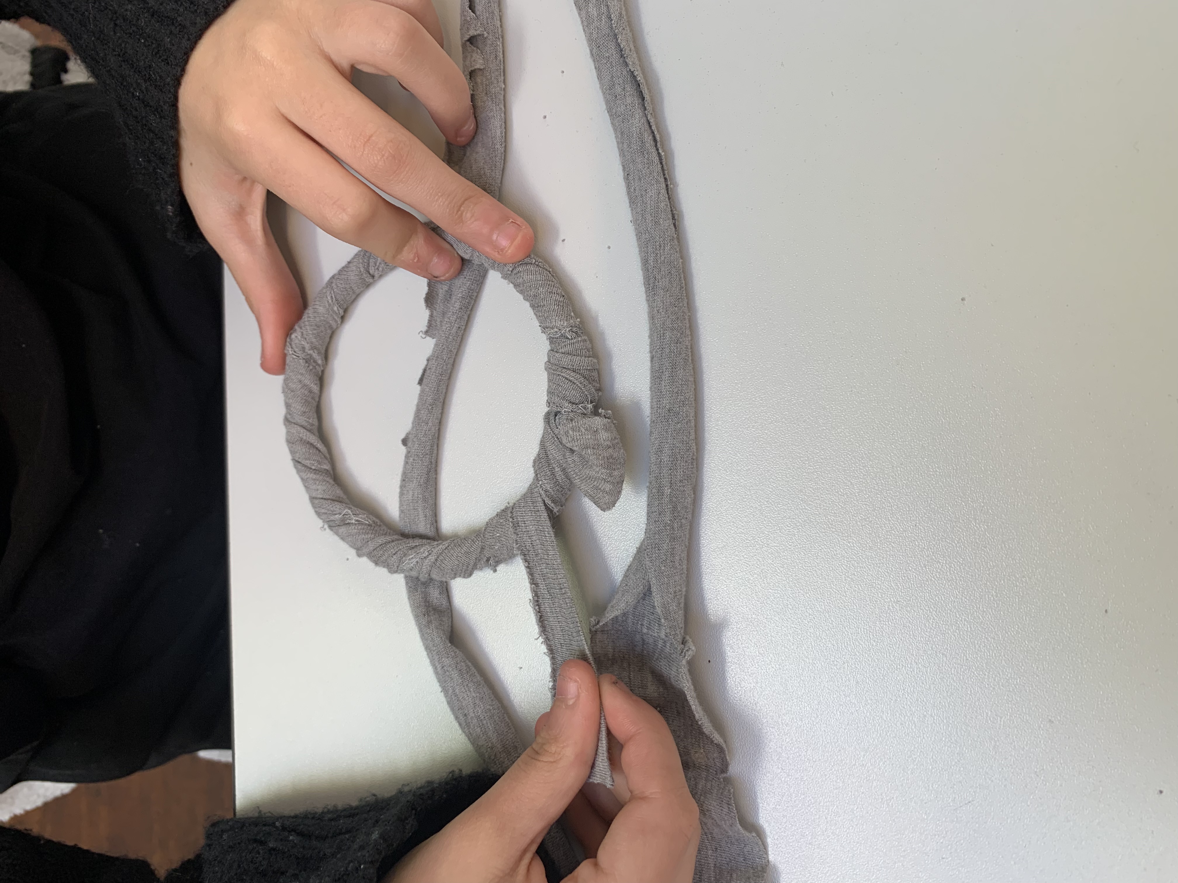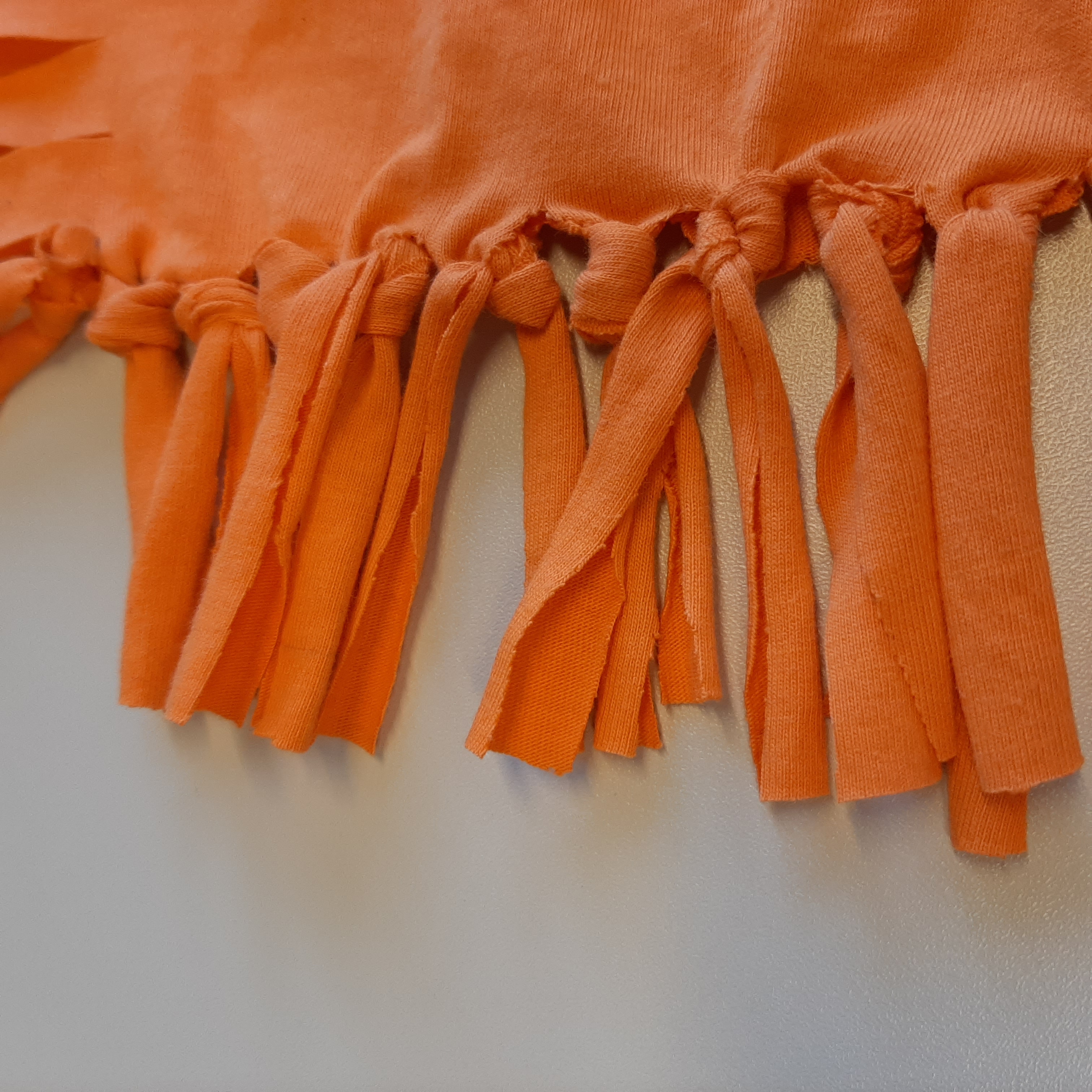 Nach einer kurzen Einführung in die Abfallwirtschaft beschäftigten wir uns mit dem Thema Nachhaltige Textilien und den Wiederverwendungsmöglichkeiten von Kleidung. Anschließend wurde das eigene T-Shirt passend zugeschnitten, mit Fransen versehen, gefüllt und zusammengeknotet, sodass am Ende ein Kissen-Unikat entstand.