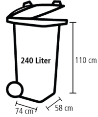 Die Wertstofftonnen gibt es als 240 Liter-Behälter. Jede Tonne ist mit einer individuellen Behälternummer und einem Chip ausgestattet, wodurch jede Leerung elektronisch erfasst wird. Sie bezahlen nur die Leerungen, die Sie in Anspruch nehmen.