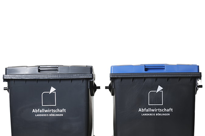 Sortiment aller verfügbaren Abfallbehälter im Landkreis Böblingen.