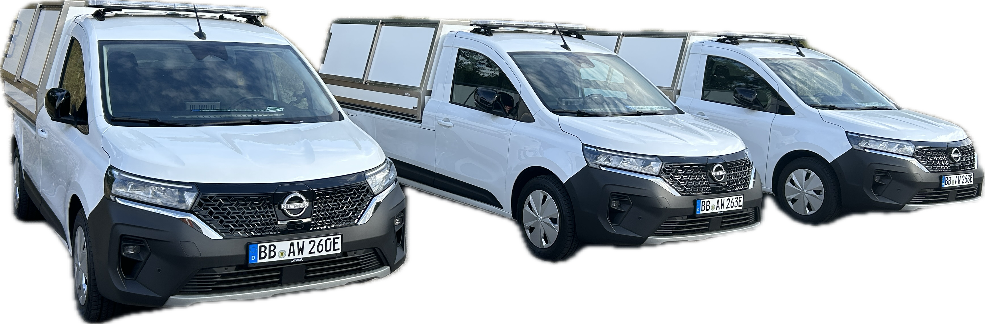 Unsere Fahrleistung beträgt fast zwei Millionen Kilometer pro Jahr. Um die damit einhergehenden Emissionen zu verringern, wurden 2025 ein weiterer vollelektrischer Dienstwagen sowie drei Standortreinigungsfahrzeuge mit Kipper-Pritsche, die ebenfalls zu 100% mit Strom fahren, angeschafft. Die drei Transporter zählen zu einer Flotte von insgesamt fünf Fahrzeugen, die beim Einsammeln illegaler Müllablagerungen und der Reinigung der Containerstandorte im Landkreis eingesetzt werden. Langfristiges Ziel ist die Elektrifizierung des gesamten Reinigungs-„Blitzdienstes“.