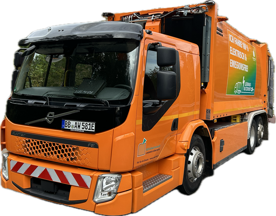 Mit der Anmietung unseres ersten vollelektrischen Abfallsammelfahrzeugs haben wir 2023 den ersten Schritt in die rein elektrisch betriebene Müllabfuhr gewagt. Seit 2024 ergänzt ein gekauftes und staatlich gefördertes Abfallsammelfahrzeug unseren elektrischen Fuhrpark. Mit diesen beiden Elektro-Lkw sammeln wir derzeit wertvolle Erfahrungen und Kennzahlen.